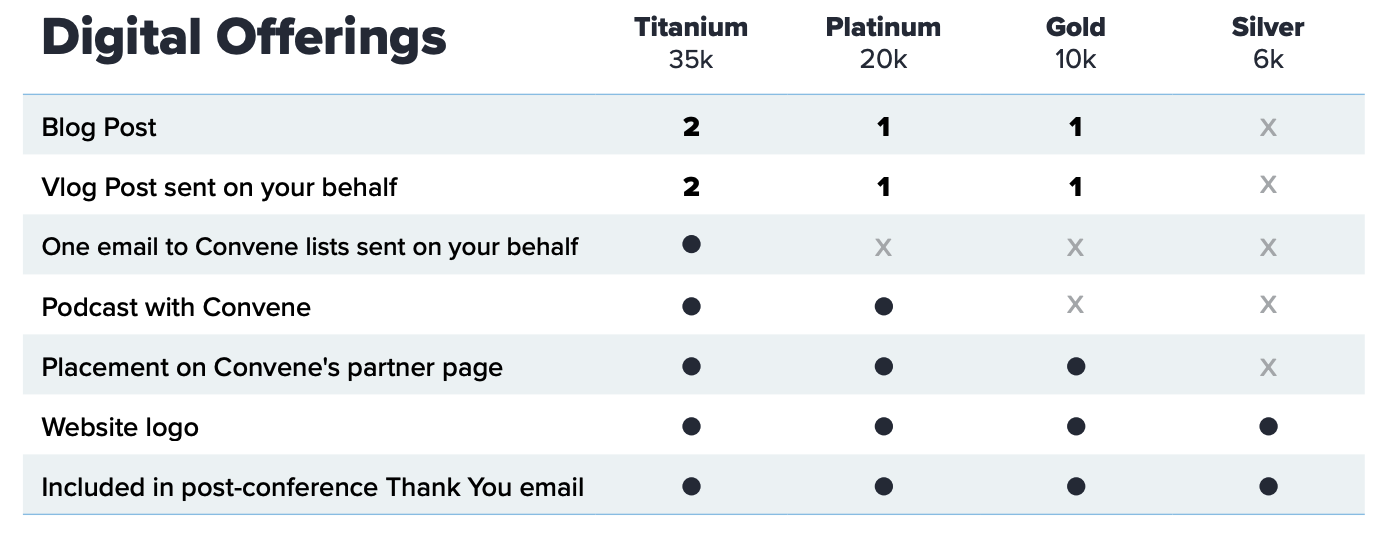You can share a 500-700 word maximum article on the Convene Blog to promote your organization. The Convene Blog posts are delivered to all Convene members and an additional database of subscribers. To view blog post examples, head to blog.convenenow.com.