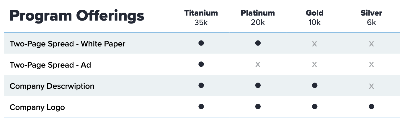 You receive a full spread in the conference program to display your company’s information in whatever way you see fit.